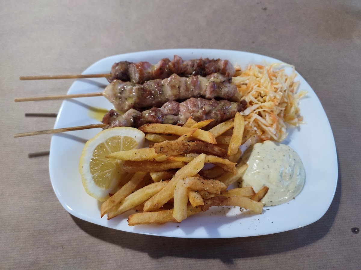 Delicious food (tzatziki, pork neck, grilled shrimps, tirosalata), attentive service, reasonable prices, and convenient parking right in front of the restaurant. Just be aware that they do not accept card payments. Enjoy it!